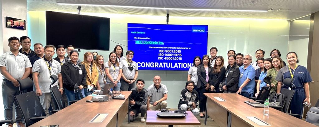 MDC ConQrete, Inc. (MCI) successfully passed the recent ISO Surveillance Audit with zero non-conformance and was recommended for the maintenance of the following certificates: